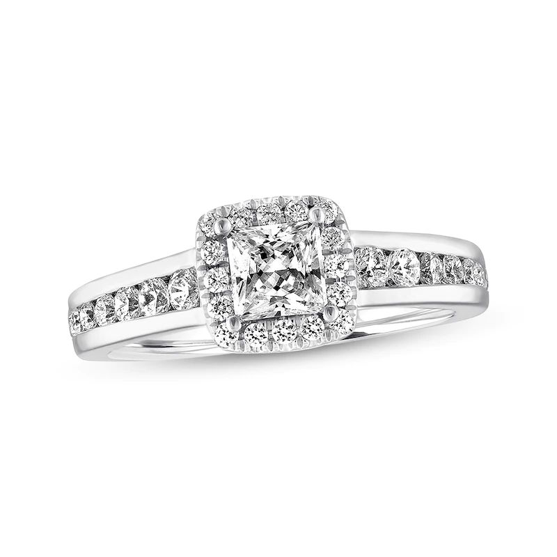 Diamond Engagement Ring 2-1/8 ct tw Princess & Round-cut 14K White Gold