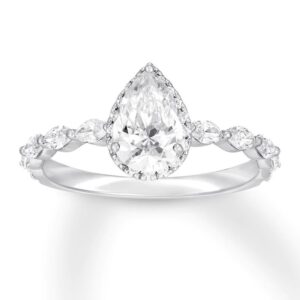 Pear-Shaped Diamond Engagement Ring 2 cts tw Round/Baguette 10K Whte Gold