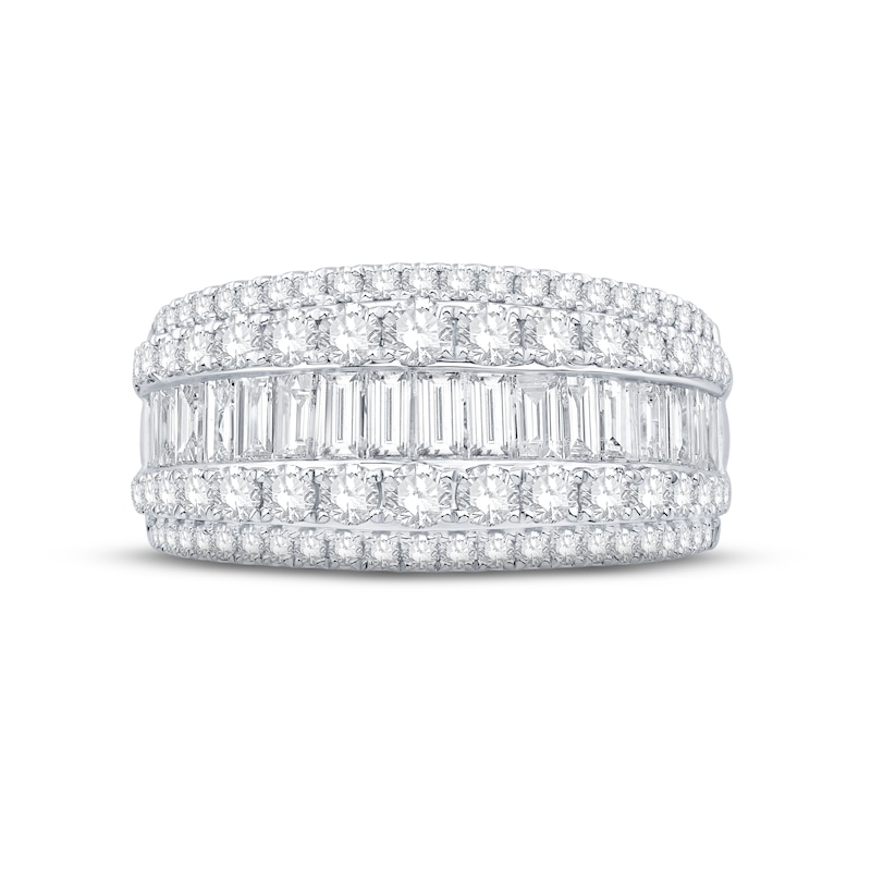 Diamond Anniversary Ring 2 ct tw Round & Baguette-cut 14K White Gold