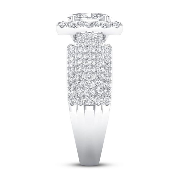 This thrilling engagement ring captures your love with independently certified diamonds. A 1/2-carat oval diamond shines at the center, while brilliant round diamonds create a halo and enhance the generous 14K white gold band. The ring has a total diamond weight of 1-3/8 carats, and the center stone is laser-inscribed with a unique serial number.